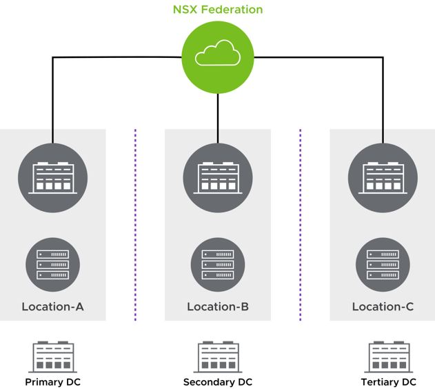 Федерация – пример еще одной из любимых «фишек» VMware, разработке которой и пропаганде уделяется чрезвычайно много внимания. Эта технология вошла в жизнь сетевого виртуализатора вместе с NSX-T Data Center 3.0 (07.04.2020 г.), и, в частности, на VMworld-2020 ей было уделено весьма много внимания. Если в двух словах описать ее функционал, получается, что благодаря этой технологии появилась возможность управлять NSX-T Data Center по всему множеству локаций и актуальна она, естественно, лишь для очень крупных развертываний со своей спецификой:
