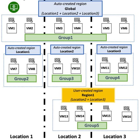 Region – объект безопасности, посланный в одну или множество локаций, которые являются частью одного и того же региона (например, EMEA). Бывает локальным (Location – действует только в одной какой-то локации), глобальным (Global – распространяется на все доступные локации) или пользовательским (Custom – самостоятельно конфигурируется, может включать набор определенных доступных локаций).