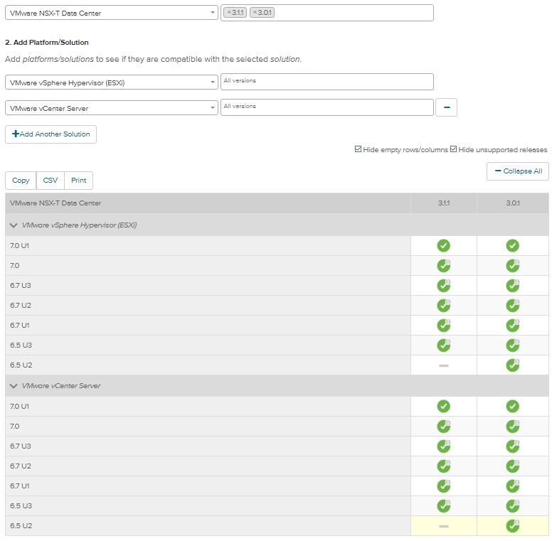 Апгрейд Федерации с первой ее версии – 3.0, – на 3.1, вдруг, вы уже являетесь активными пользователями решения и хочется попробовать на вкус его новейшие функции, ничем не отличается от банального обновления NSX-T Data Center, которому мы посвятили отдельную статью из цикла по виртуализации сетей «Обновление VMware NSX-T Data Center до версии 3.1». Поддерживаемый путь апгрейда (с какой версии можно обновлять на какую) там приведен для 3.1.0, как и замечания, касающиеся конкретно Федерации. Для актуального на момент написания этого материала матрица пути апгрейда выглядит так: