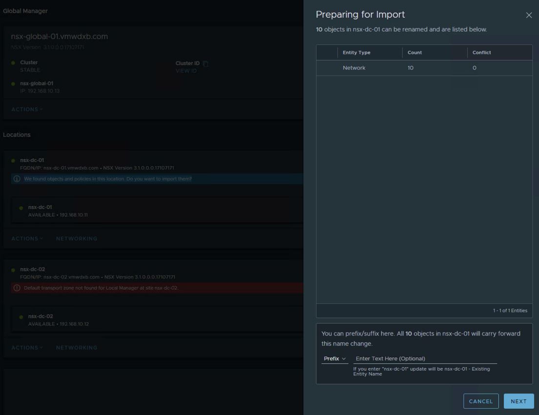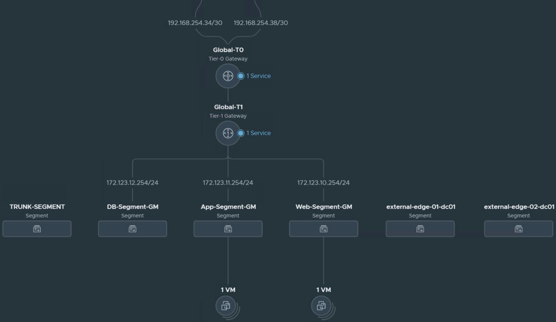 Доступна поддержка объектов, созданных GM в LM, в частности, подключение Т1-шлюза LM к Т0-шлюзу GM, использование групп GM в правиле DFW LM. Однако нельзя подключать сегмент LM к Т0/Т1-шлюзу GM и балансировщик нагрузки к Т1-шлюзу GM.