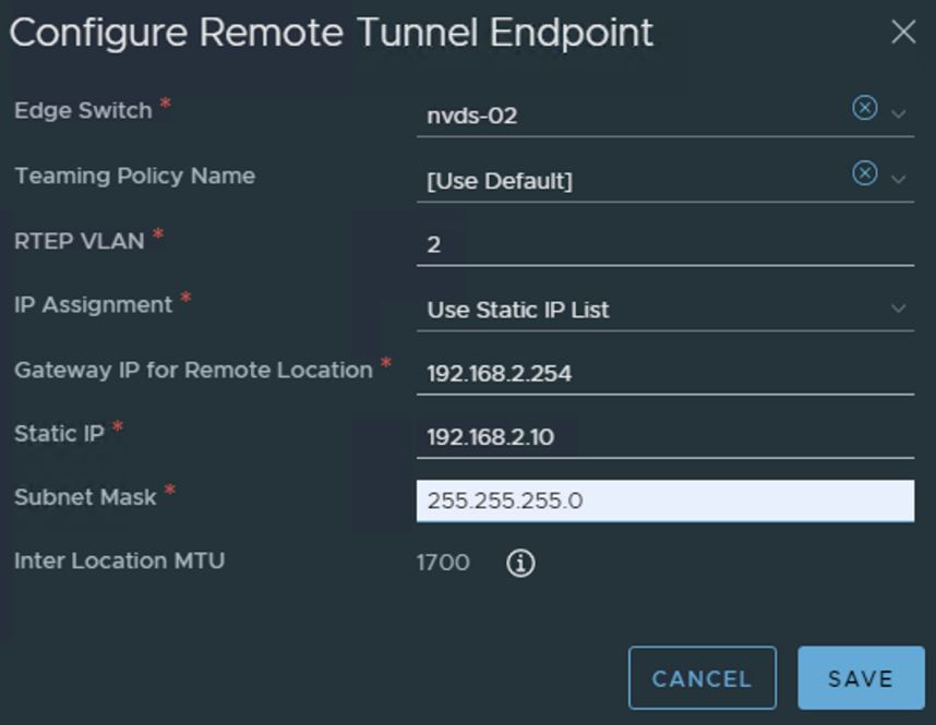Важно! Настройку RTEP нужно осуществлять на базисе кластера Edge, и каждая из его нод в этом случае должна обладать сконфигурированным RTEP, но только в том кластере, который используется в настройке шлюза, чей спан превышает одну локацию.