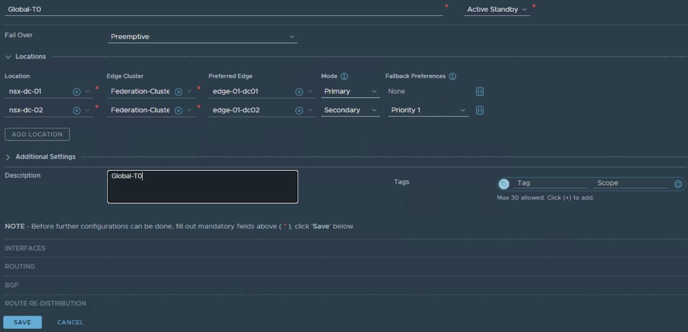 Важно! Чтобы уменьшить кросс-локационный трафик одну и ту же локацию нужно настраивать как главную и для шлюза Т0, и для связанного с ним Т1.