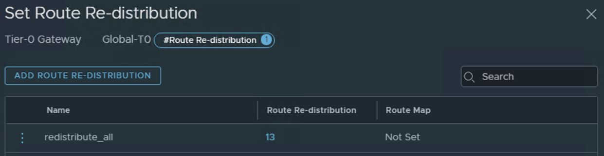 Также можно настроить перераспределение маршрутов, если нажать на «Route Redistribution». Здесь по каждой локации нажимаем «Set»: