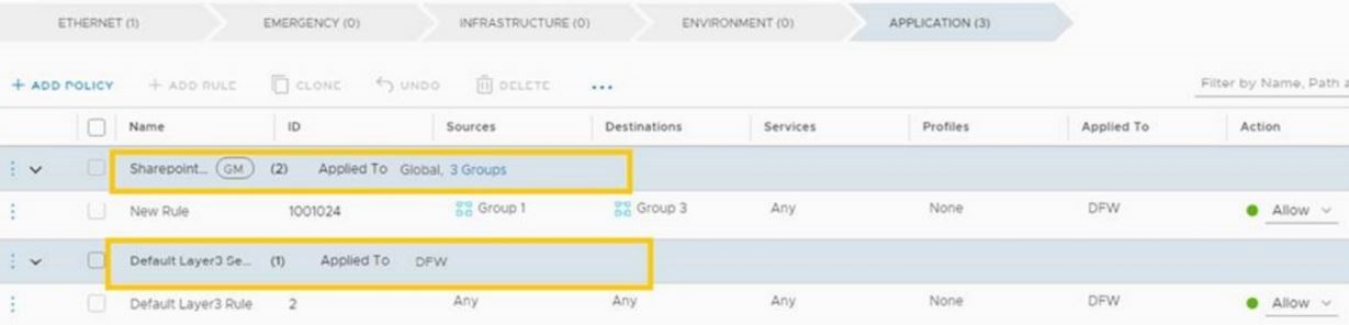 Правила DFW, назначаемые в GM, могут обладать глобальным, региональным или локальным спаном: