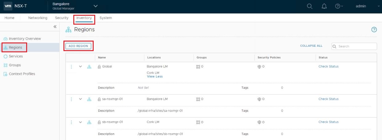 В UI заходим на вкладку «Inventory» и в левой панели – в раздел «Regions», после чего нажимаем на кнопку «Add Region» и в окне настроек задаем имя региона, выбираем локации, которые хотим в него включить, после чего сохраняем настройку кнопкой «Save»: